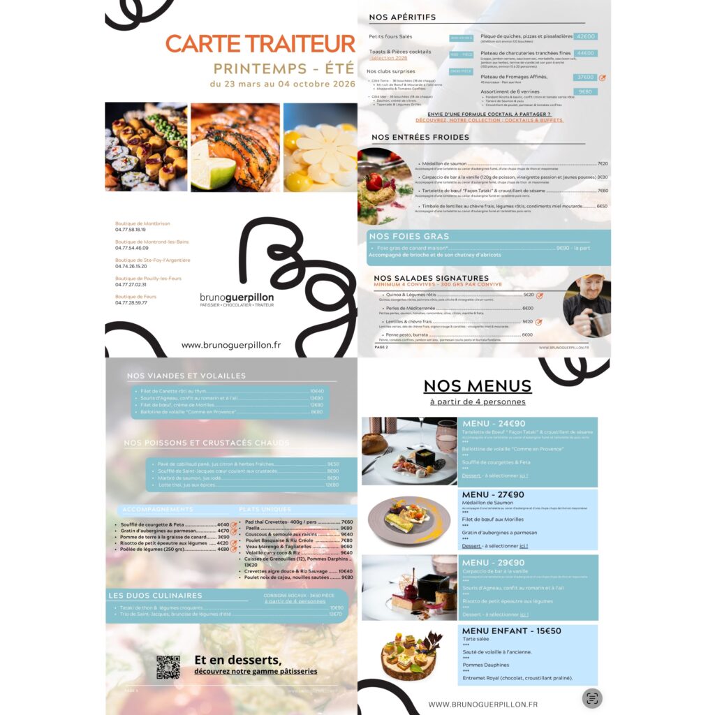 Depuis 1991, Bruno Guerpillon réunit en une seule Maison, la pâtisserie, la chocolaterie, la confiserie, les glaces et le traiteur. Le savoir-faire, la passion du métier et la créativité sans cesse renouvelée de la Maison Bruno Guerpillon défendent les valeurs de l’exigence, du respect, de l’authenticité et de la générosité.
